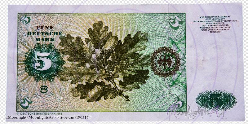 Fünf deutsche Mark - Geldschein Rückseite - freigestellt