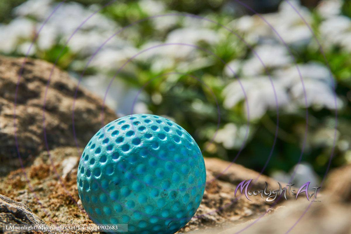 Minigolf - Ball (Fokus) liegt vor Blumen