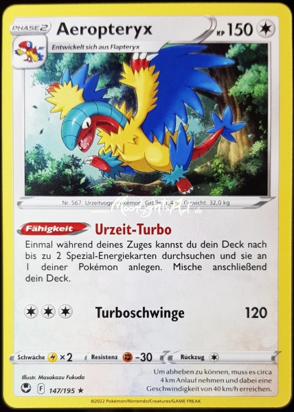 Pokémon Karte: Aeropteryx Rarität: Rare Zustand:Boosterfrisch Sprache: Deutsch
