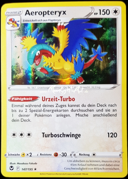 Pokémon Karte: Aeropteryx Rarität: Holo Rare Zustand:Boosterfrisch Sprache: Deutsch